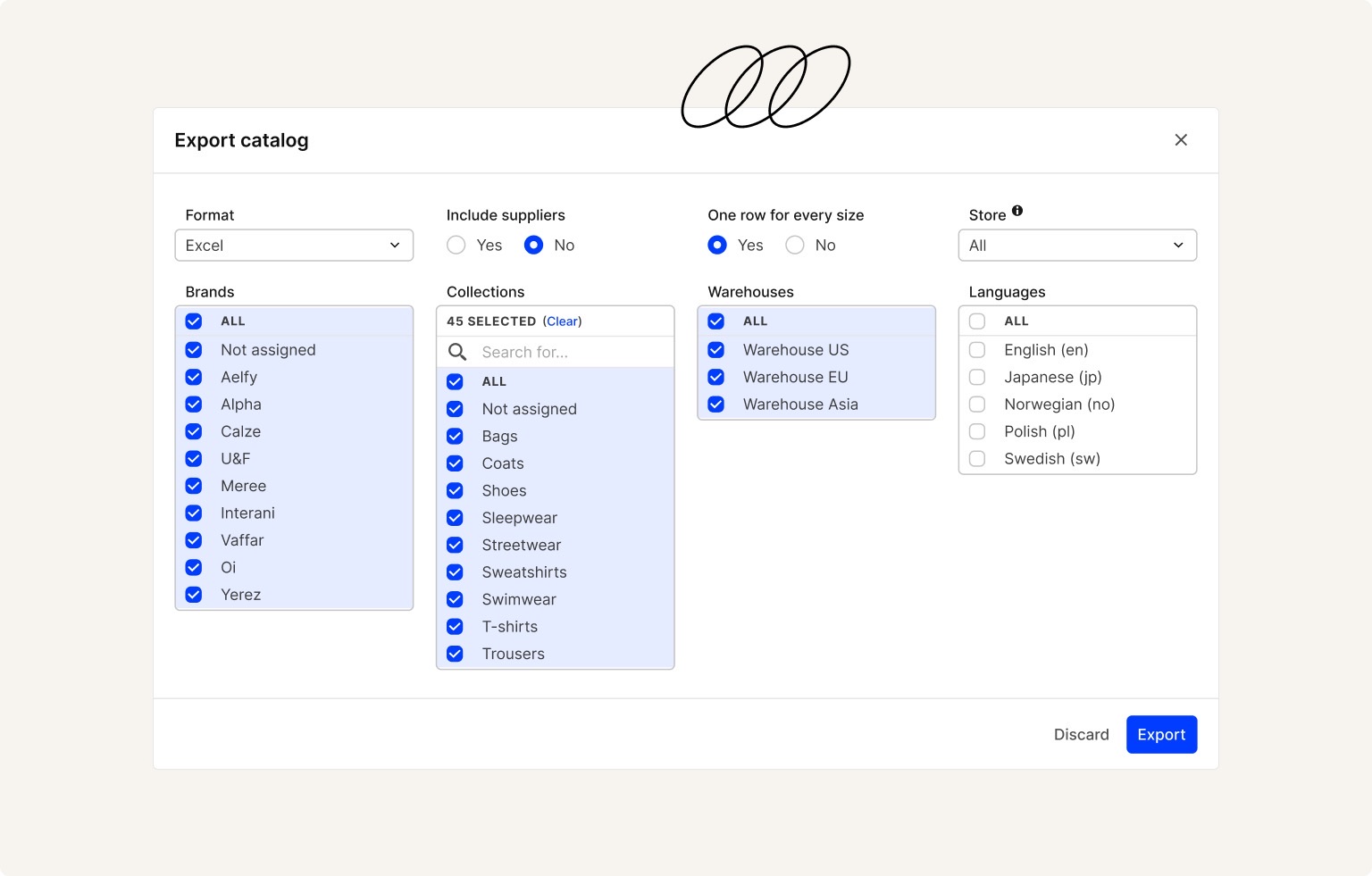 - We have replaced the old selector with a multiselector for Brands, Categories and Warehouses.